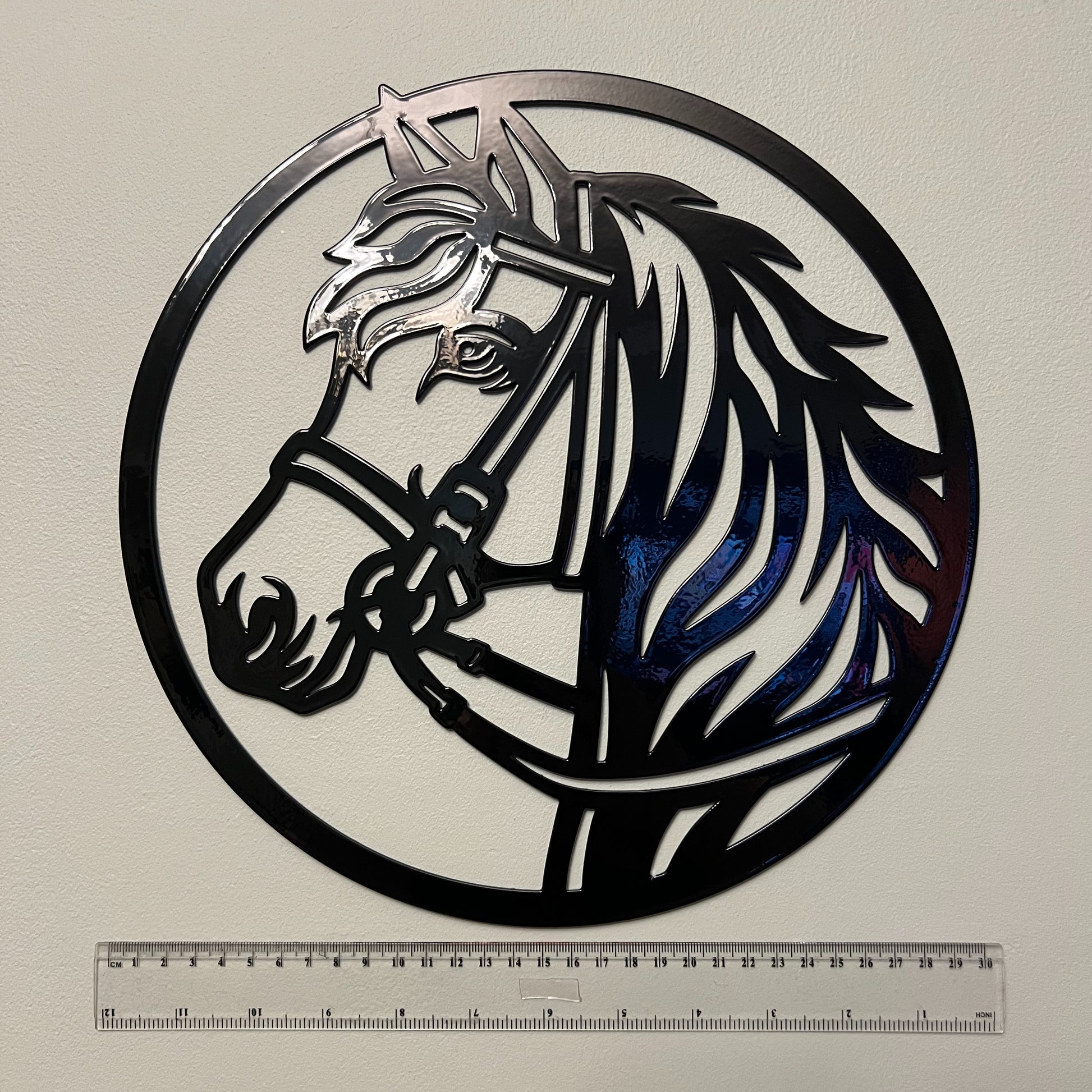Round Horse Head Wall Design – 30cm (Gloss Black, Aluminum)